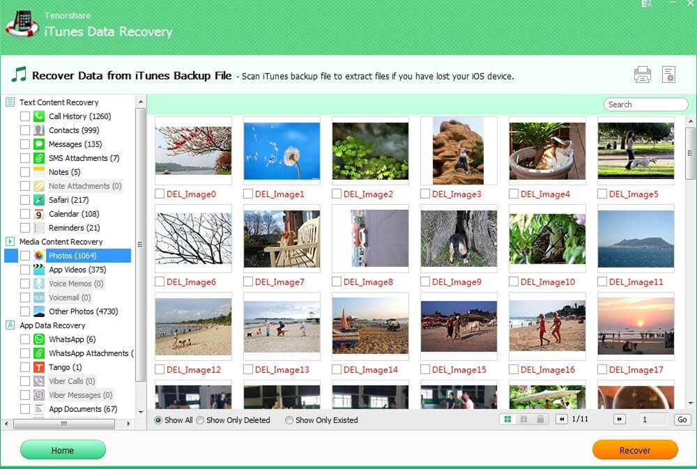 - 2. After the scanning, all backup files are listed for you to browse. If you want to transfer or convert the data into accessible files which can be saved on your computer disk, select them and click "Recover" button.