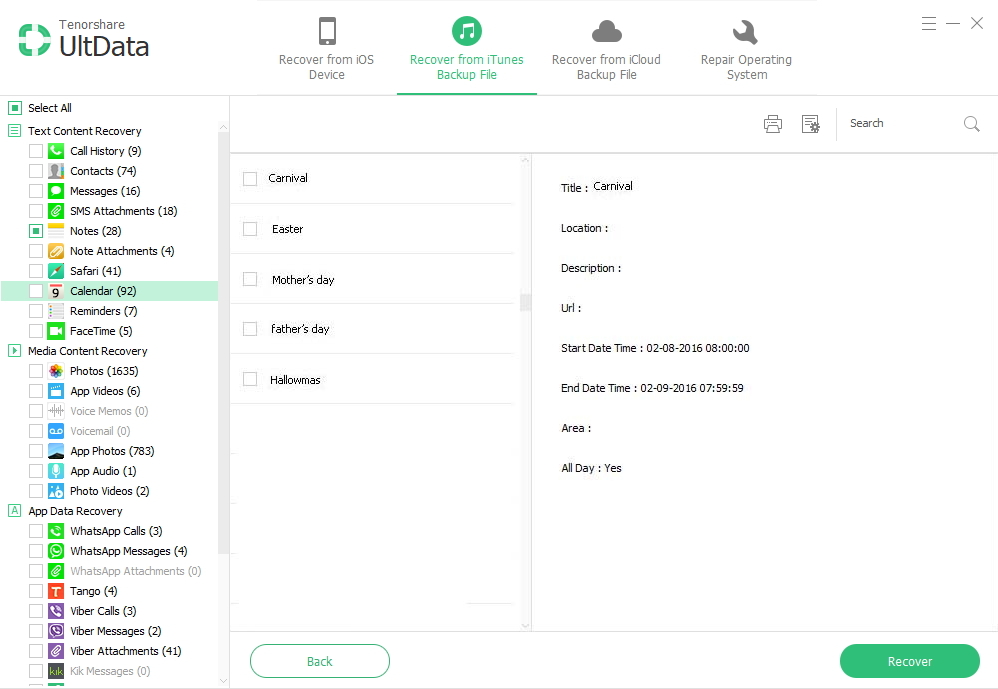 - Step 3. Preview and recover lost iPhone calender.