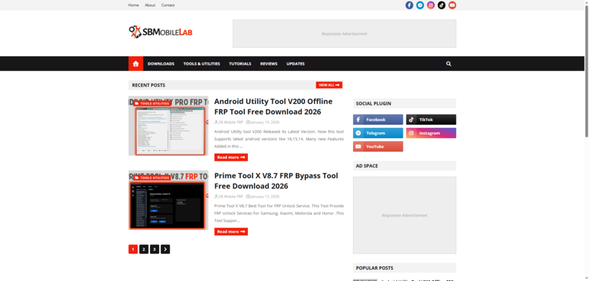 Step 1: Visit the SB Mobile Lab site to see the latest tools (like Prime Tool X V8.7 or Android Utility tool V200) with download links. You can also join the Telegram channel for direct FRP SB Mobile Lab downloads of tools like CAM Tool or TMT. Passwords are usually provided there.
